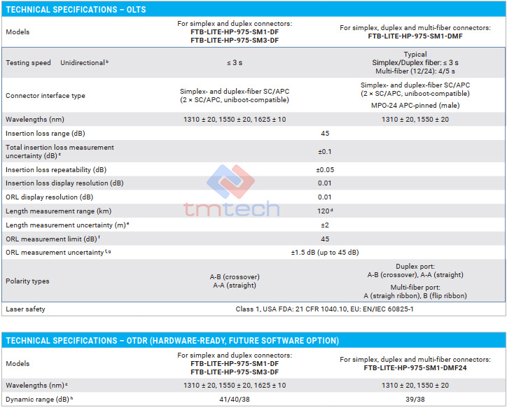 EXFO FTB Lite 975 là bộ đo kiểm suy hao quang (OLTS) mới nhất đến từ hãng EXFO - Canada. Bộ sản phẩm gồm 1 thiết bị phát công suất và 1 thiết bị thu công suất để đo chính xác suy hao của tuyến. FTB Lite 975 hỗ trợ đa dạng các đầu kết nối: simplex, duplex và multi-fiber lên tới 24 sợi. Điểm đặc biệt nhất của dòng FTB Lite Series là sử dụng eSIM giúp máy đo kết nối mạng mọi lúc mọi nơi, tăng cường khả năng trao đổi dữ liệu.